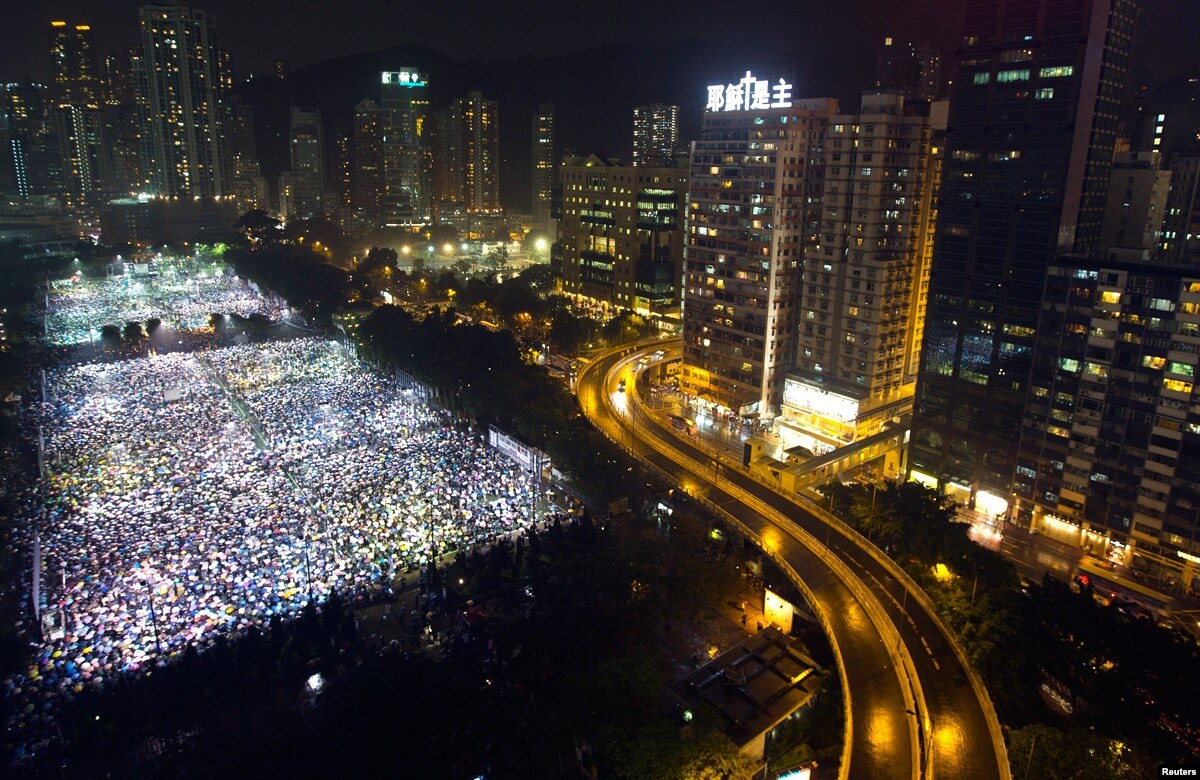 Tens of thousands of people attend a candlelight vigil at Hong Kong's Victoria Park, June 4, 2013
