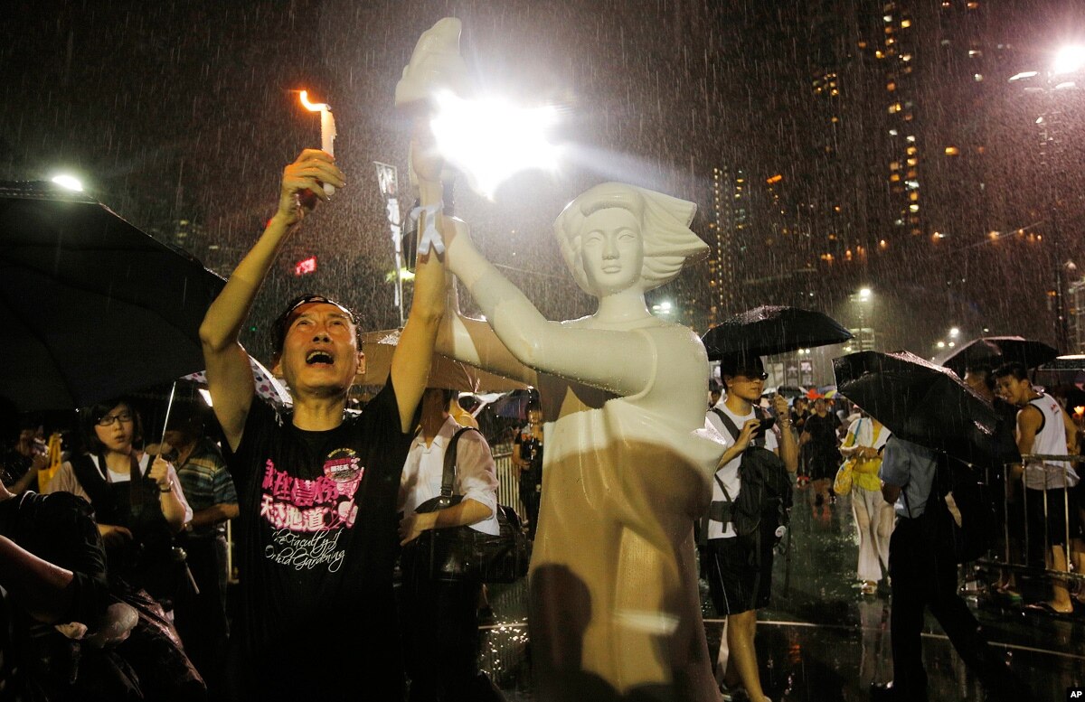 The former British colony of Hong Kong has retained the freedom to protest since returning to Chinese sovereignty in 1997. Participants in the latest vigil pledged to "never forget" those killed at Tiananmen. Speakers also vowed to keep fighting against what they see as Beijing's attempt to slow Hong Kong's progress toward universal suffrage for the city's leader and legislature.